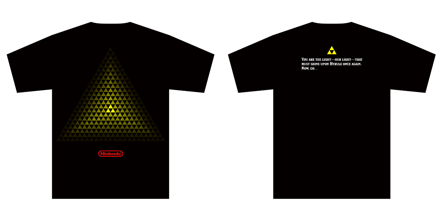 This T-Shirt design was created in conjunction with the release the The Legend of Zelda: Breath of the Wild, showcasing a radiating Triforce on the front and a quote from the opening moments of the game. Individual images are above with renders on how it'd look on a shirt are below.